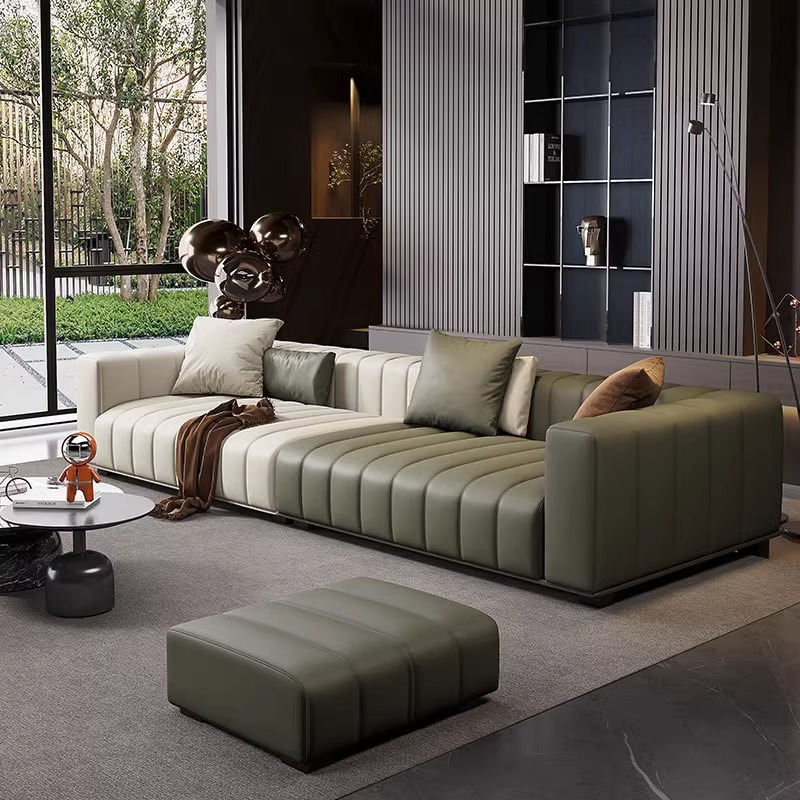 意式极简钢琴键真皮沙发现代设计师款大户型客厅头层牛皮沙发组合