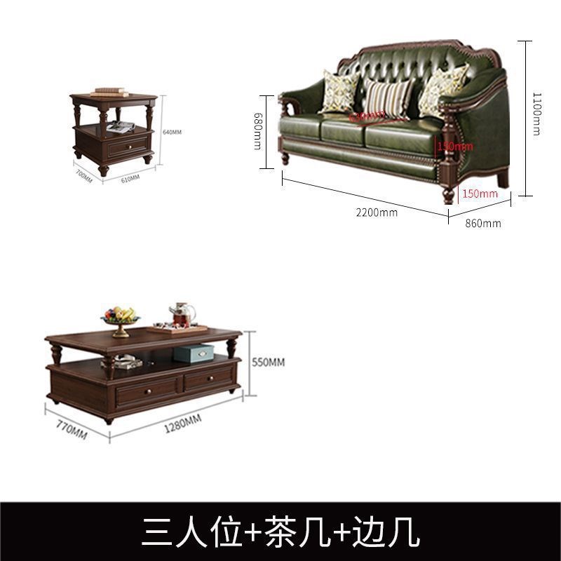 美式乡村复古实木真皮沙发头层牛皮123组合简美客厅别墅三人位