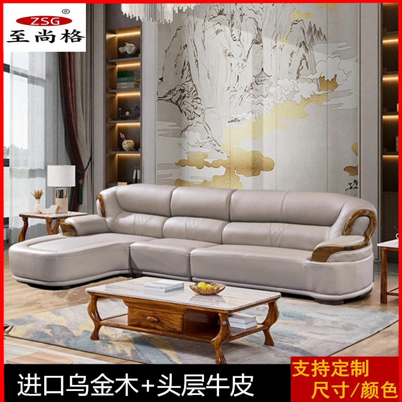 新中式乌金木真皮沙发客厅组合大小户型头层牛皮直排沙发2025新款