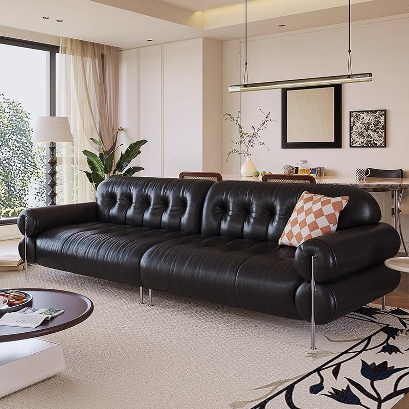 法莎蒂黑金刚沙发意式客厅头层牛皮直排真皮组合2025年复古款