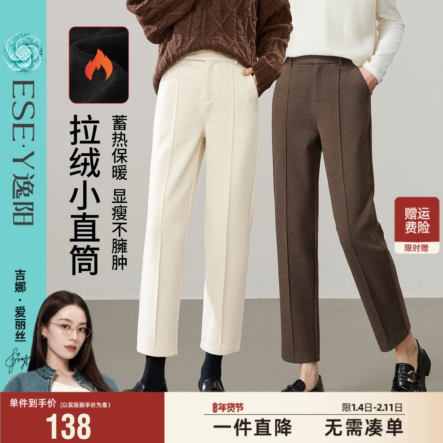 逸阳醋酸羊毛镰刀裤2025秋冬新款女加绒保暖直筒小个子九分哈伦裤