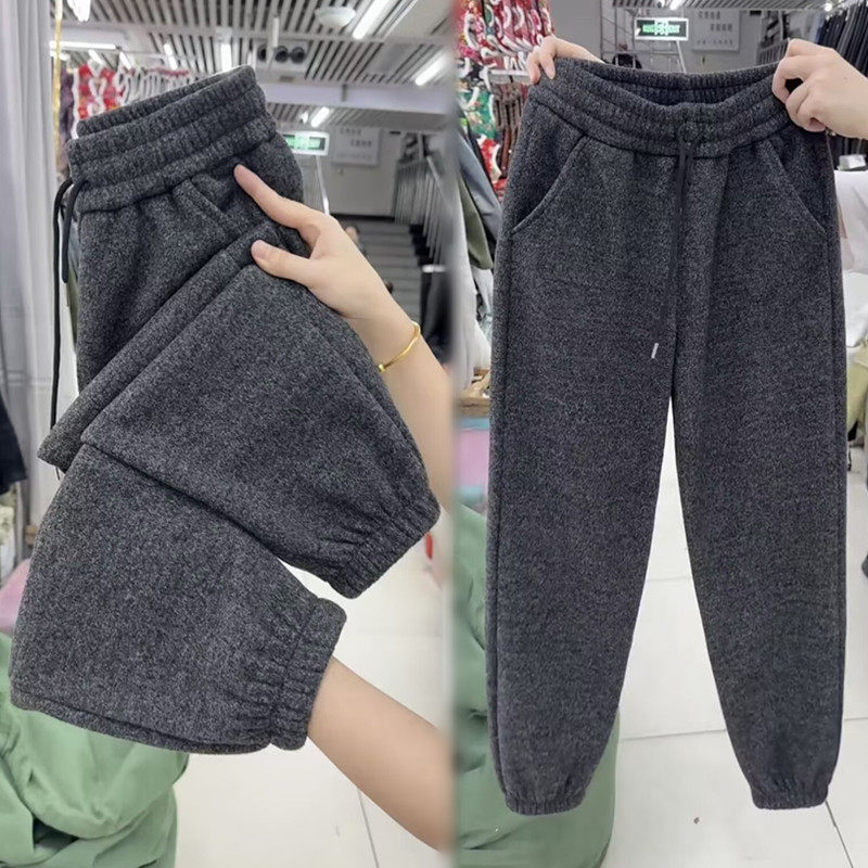2025秋冬加绒加厚宽松显瘦束脚卫裤女高腰九分小个子休闲灰哈伦裤