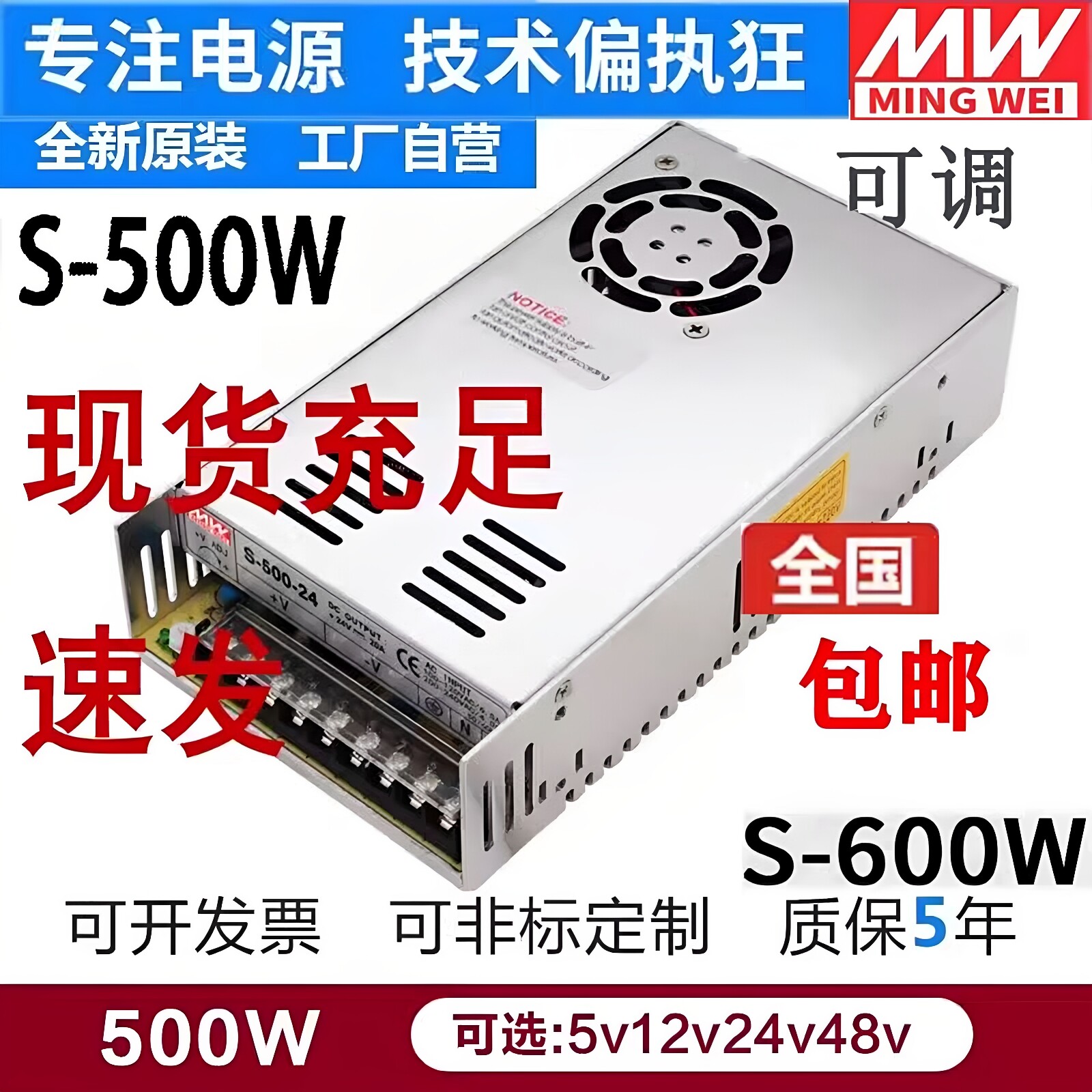 正品台湾明纬电源LRS-600系列5V/12V/15V/24V/36V/48稳压直流输出