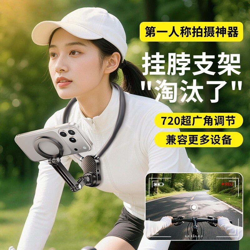 挂脖拍摄神器手机支架第一视角设备磁吸防抖全景相机胸前固定脖子vlog拍摄骑行钓鱼直播运动相机通用