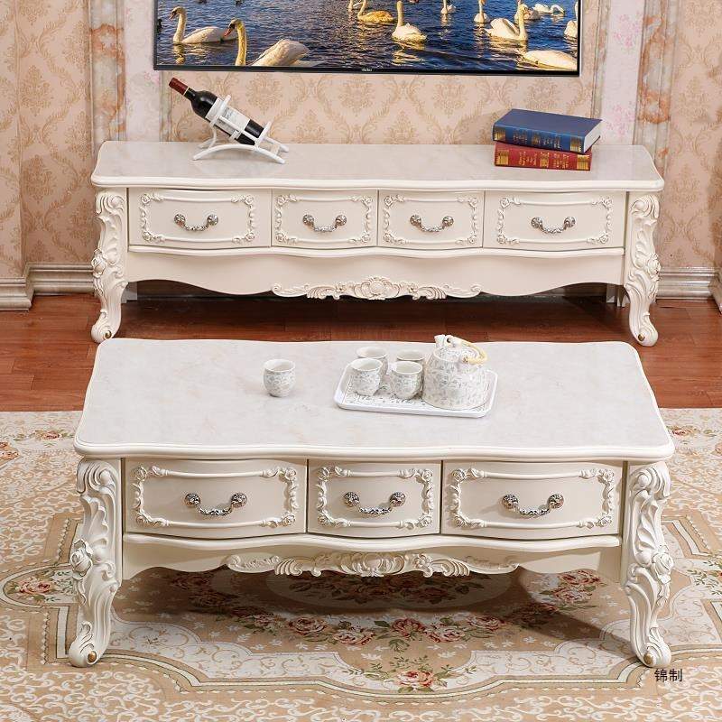 欧式茶几电视柜组合客厅大理石法式地柜实木雕花高档方形简欧奢华