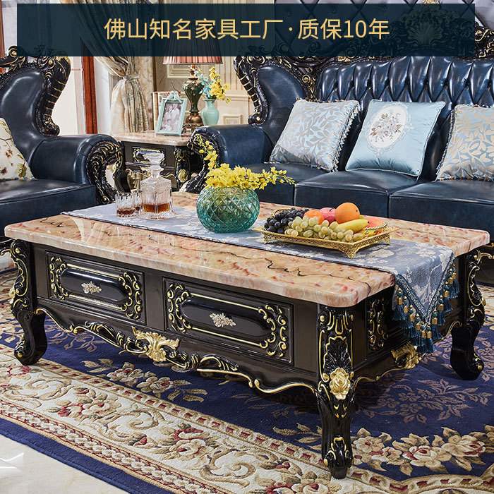 乌金木天然大理石电视柜地柜茶几沙发组合欧式简欧大户型雕刻家具