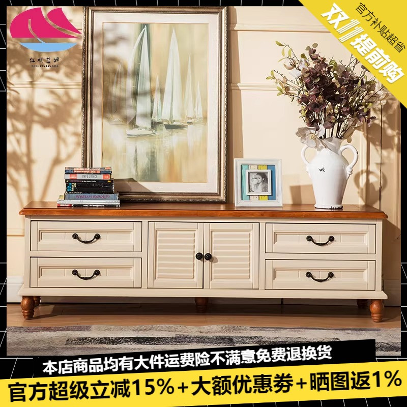 地中海美式乡村多功能烤漆实木小户型储物简欧茶几电视柜组合套装