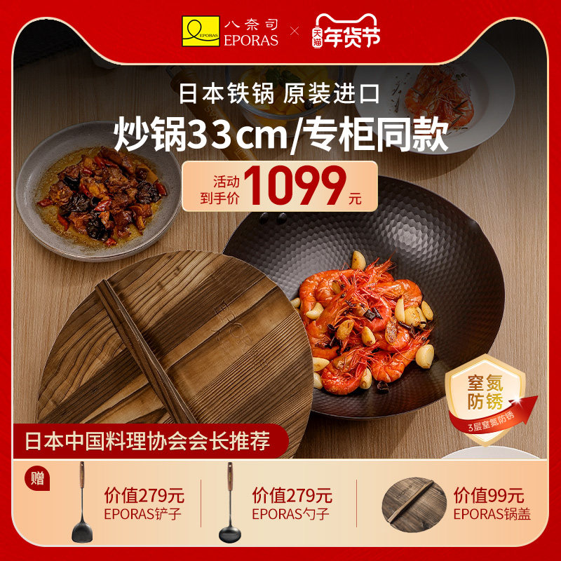 eporas八奈司日本原装进口家用炒锅无涂层极铁锅燃气灶炒菜锅铁锅