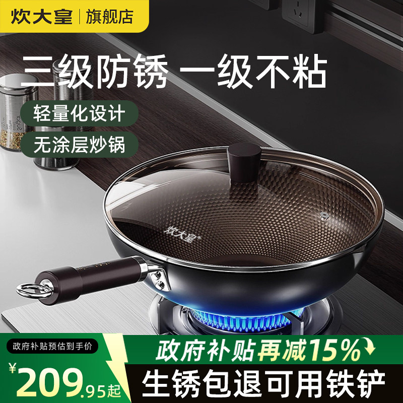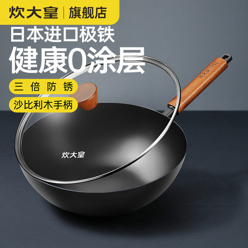 炊大皇旗舰店铁锅炒菜锅炒锅家用不粘锅燃气灶专用明火不锈极铁锅