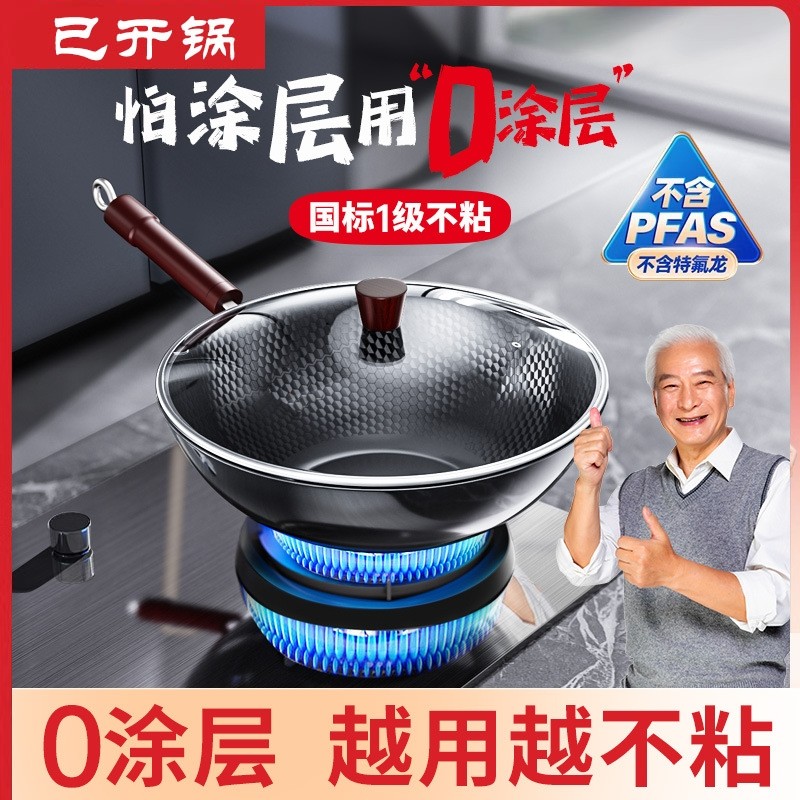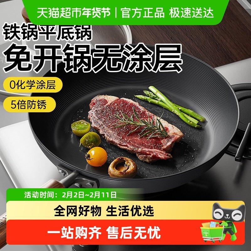 已开锅极铁锅不粘锅家用炒锅电磁炉燃气灶专用炒菜锅无涂层熟铁锅