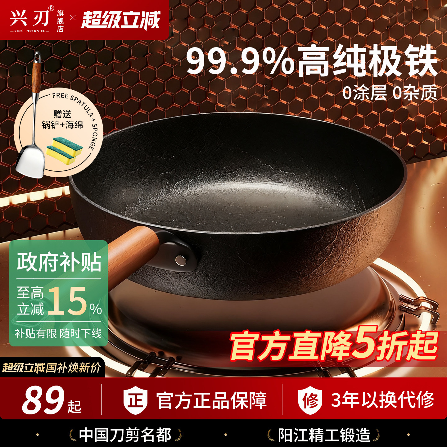 兴刃平底锅铁锅无涂层煎锅不粘锅家用煎饼煎蛋锅神器牛排锅极铁锅