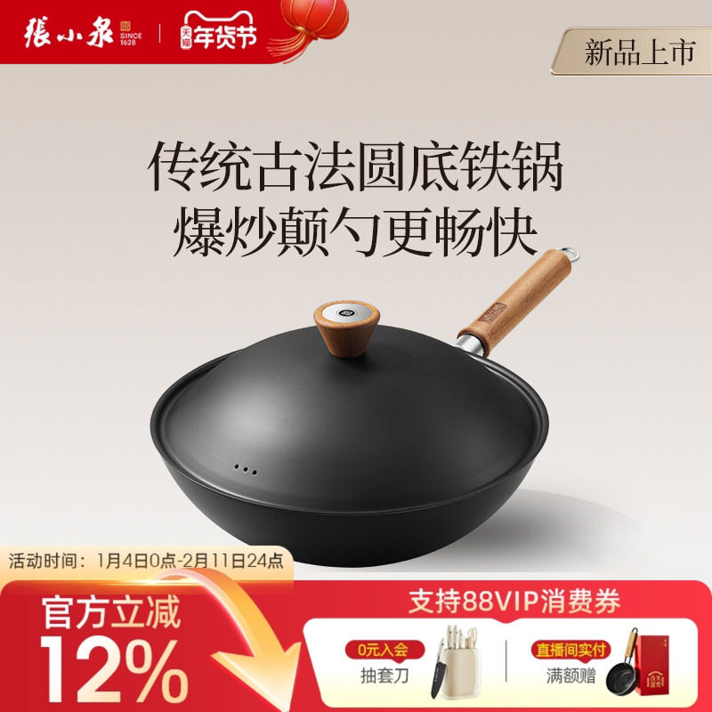 张小泉极铁锅官方正品老式铁锅不粘锅炒菜锅燃气灶专用熟铁无涂层
