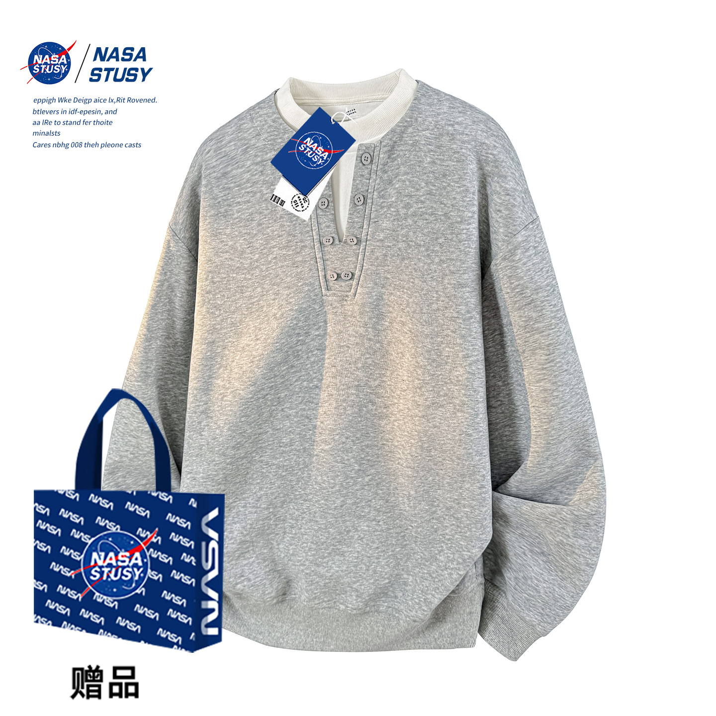 NASA STUSY美式高街2026新款春秋装男款情侣潮牌亨利领假两件卫衣