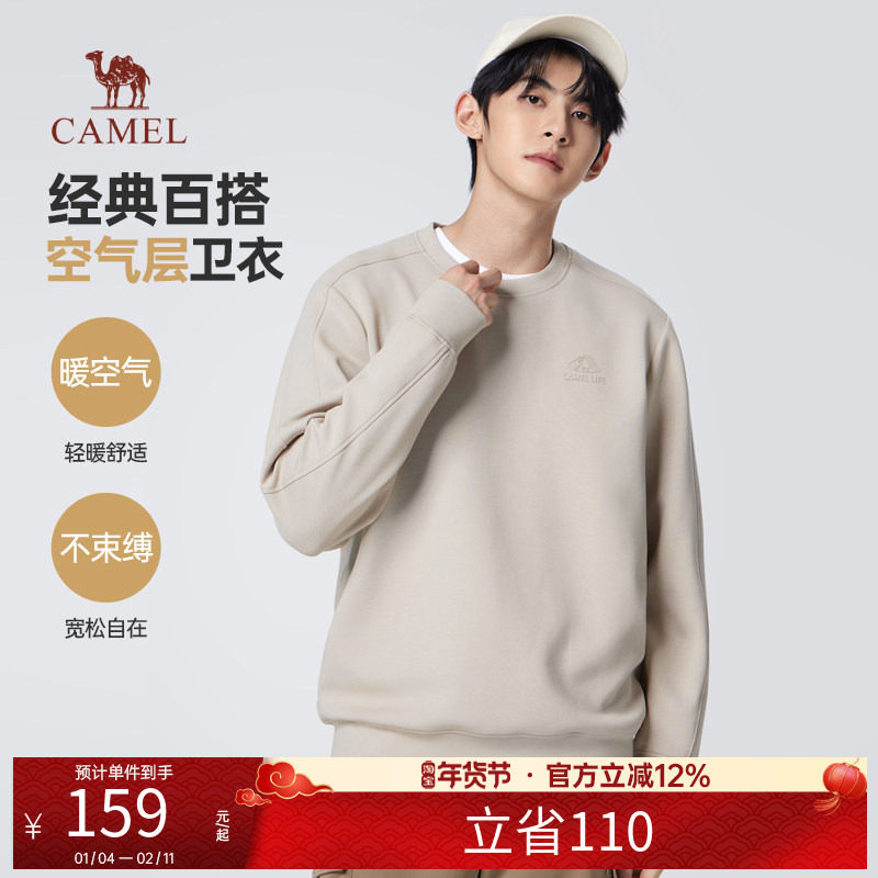 骆驼男装圆领卫衣男春秋季2025情侣套头纯色长袖t恤打底衫上衣男