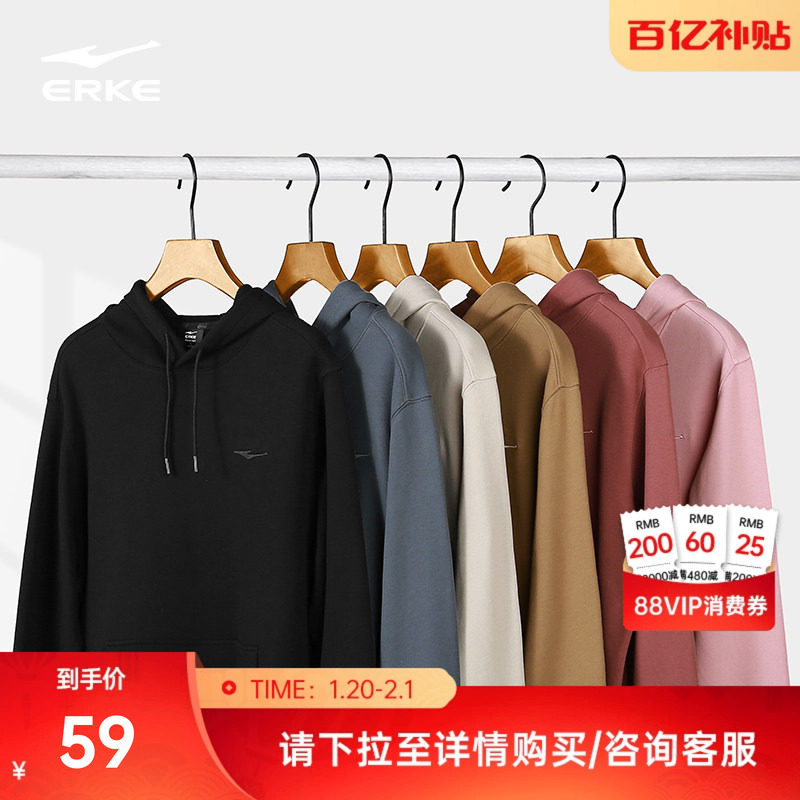 鸿星尔克国风卫衣男春秋男士情侣款男生运动男装宽松连帽卫衣男款
