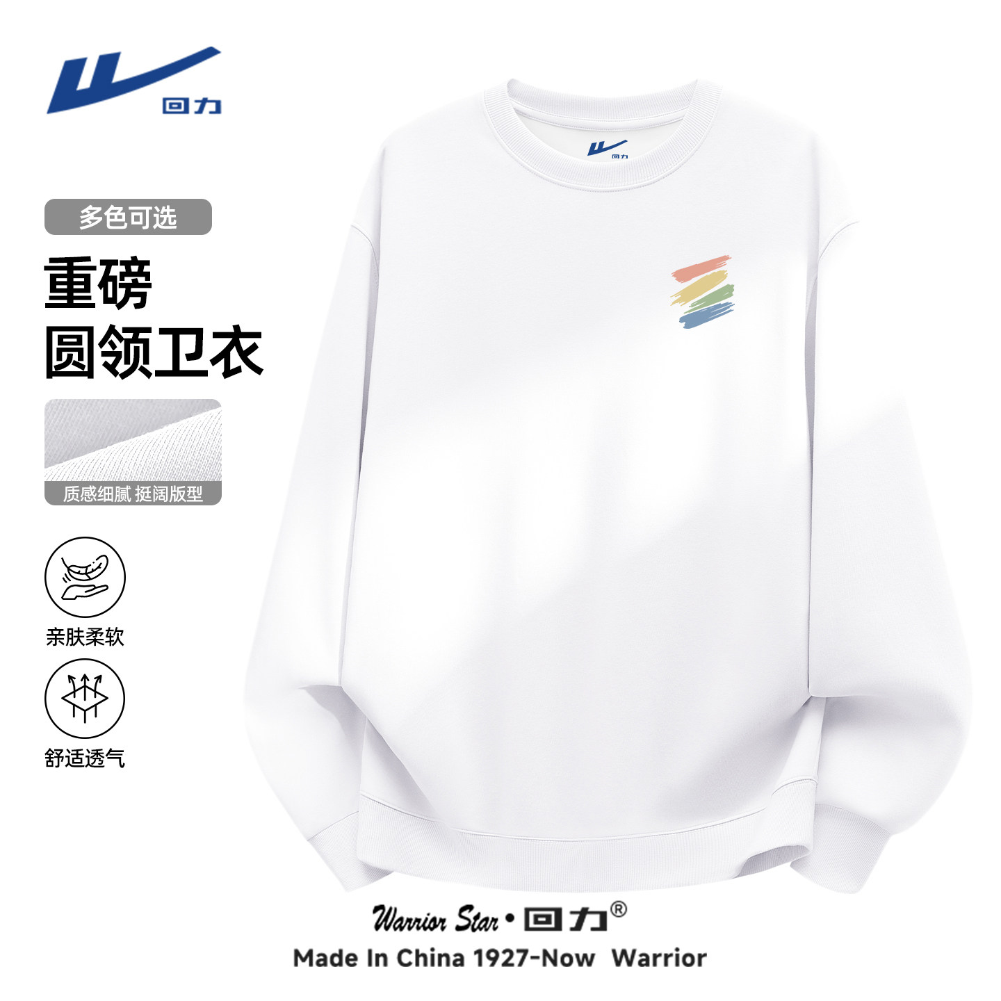回力圆领卫衣男春秋季多巴胺彩色涂鸦情侣装正肩白色小领口长袖Y