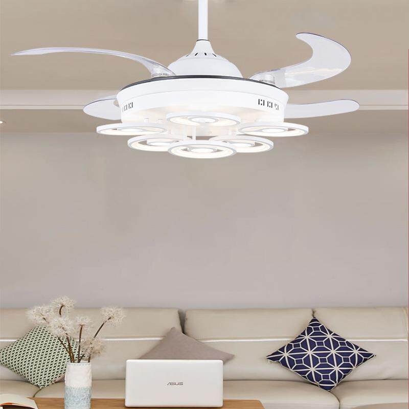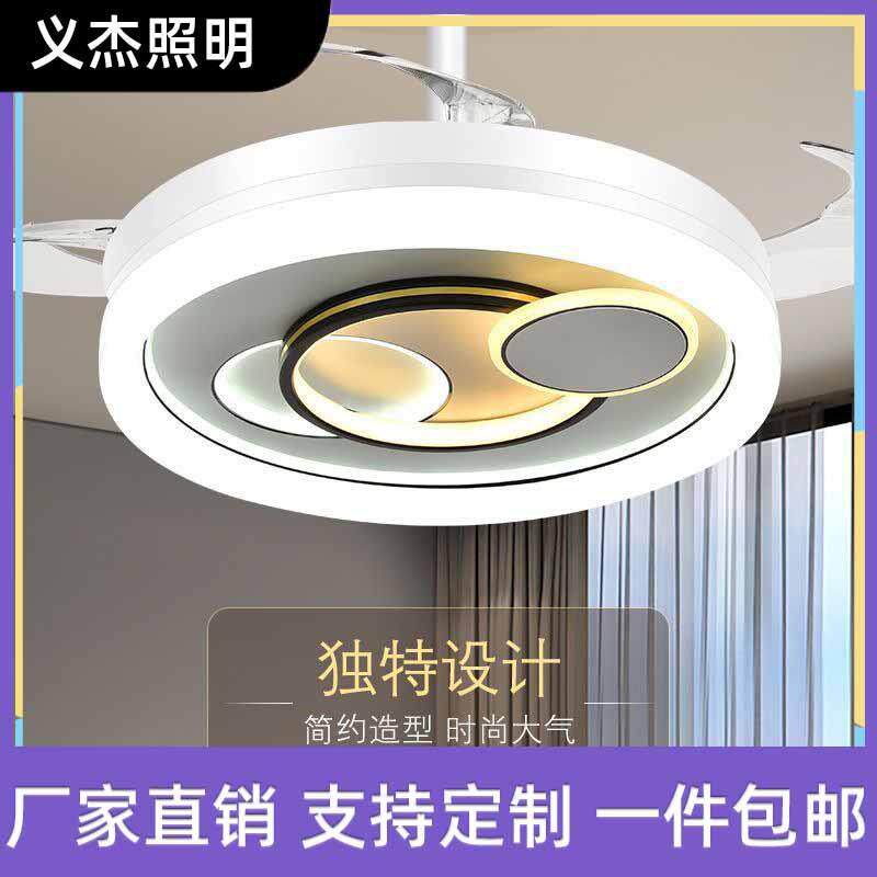 现代简约led隐形风扇灯 家居亚克力风扇吊灯客厅卧室餐厅吊扇灯