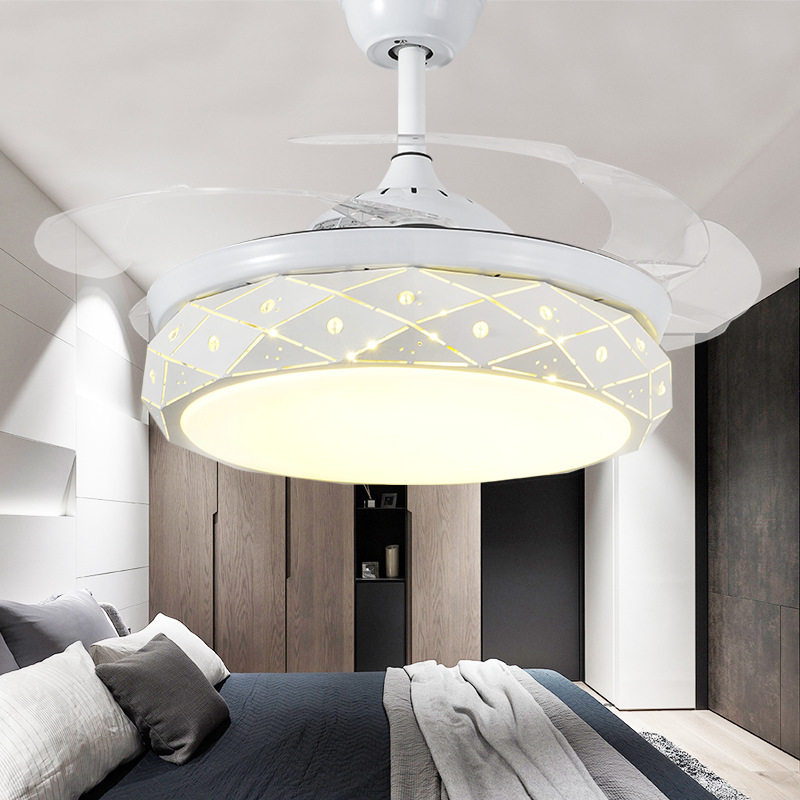 简现代led隐形WXH厅风扇灯客卧室约书房水灯吊扇晶灯家居电风扇吊