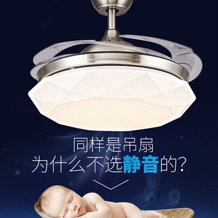 水晶隐形吊扇灯 简约时尚现代电风扇吊灯客厅餐厅带led欧式风扇灯