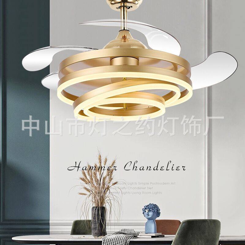 吊扇灯LED简约现代隐形风扇灯 客厅餐厅电风扇一体吊灯中山厂家