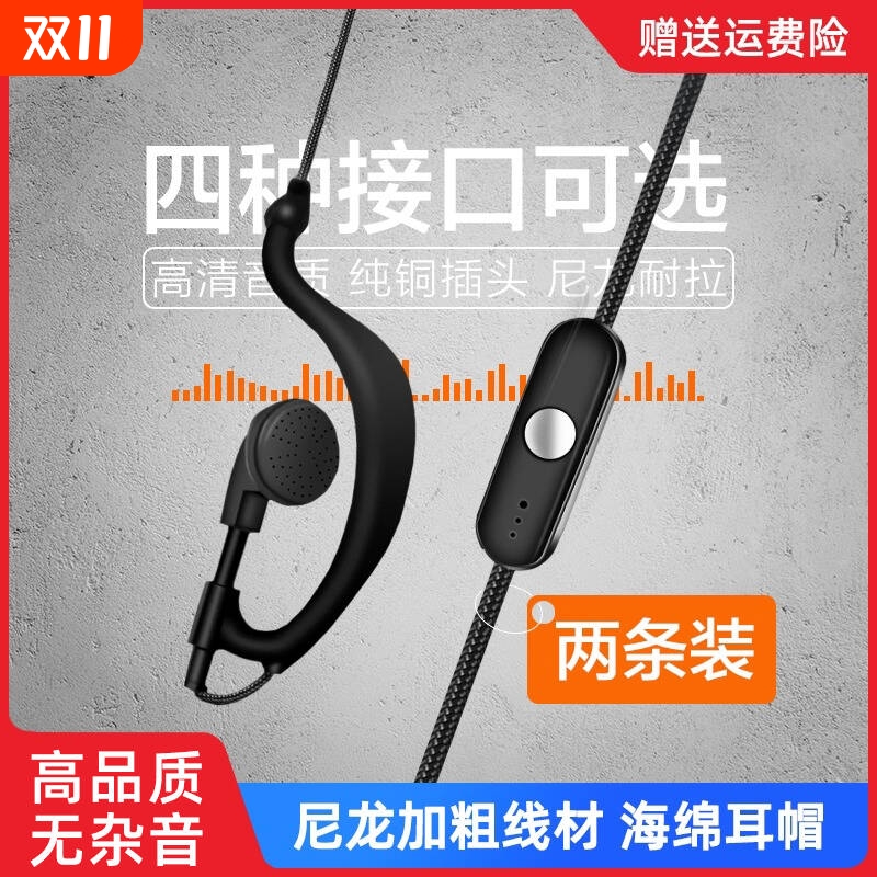 耳塞对讲机耳机线电话高清音质耳挂式K头笑脸耳麦双孔通用型配件