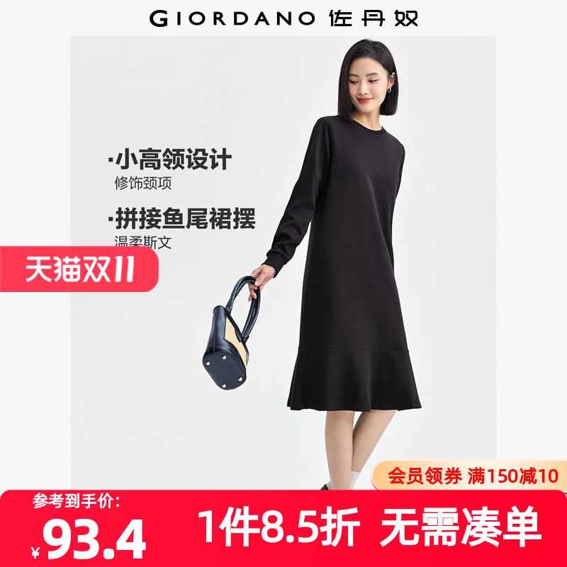 佐丹奴裙子女装小高圆领双面布针织鱼尾连衣裙 13464764