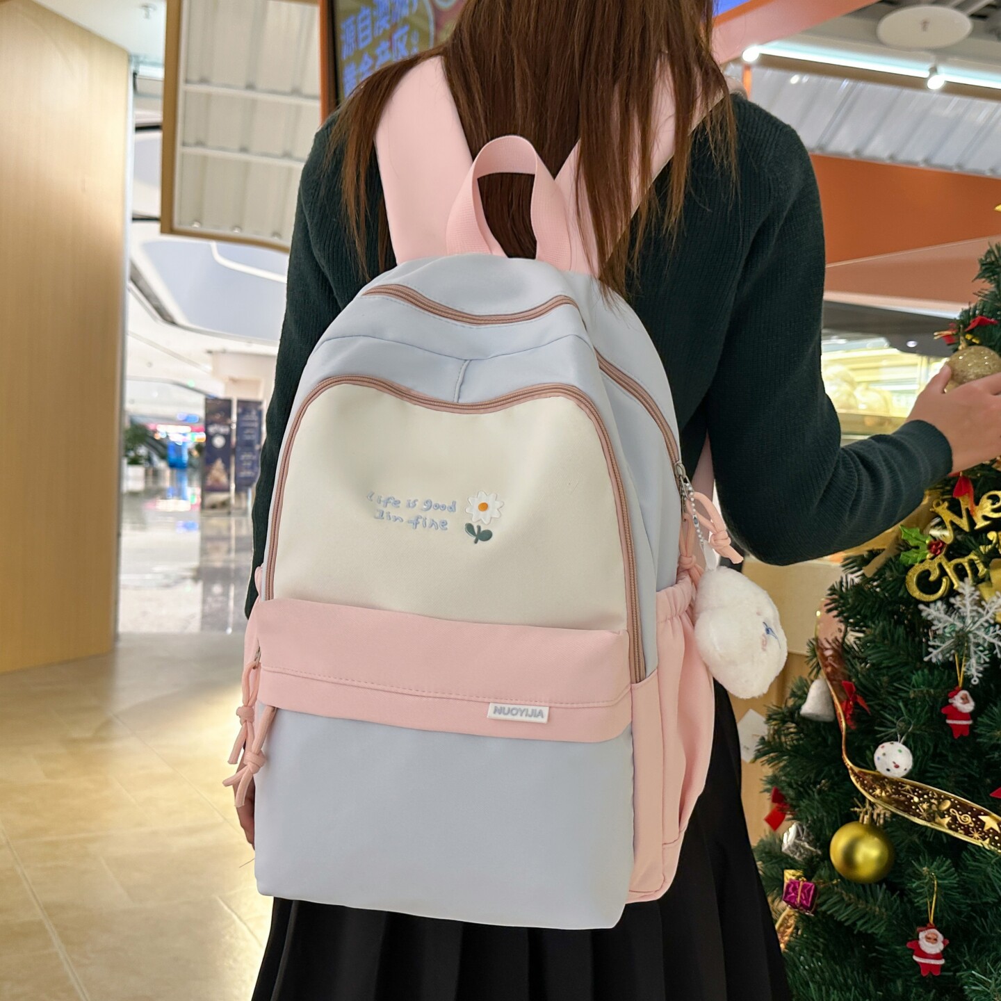 拼色书包初中生女高中小学生女生背包校园小雏菊轻便大容量双肩包