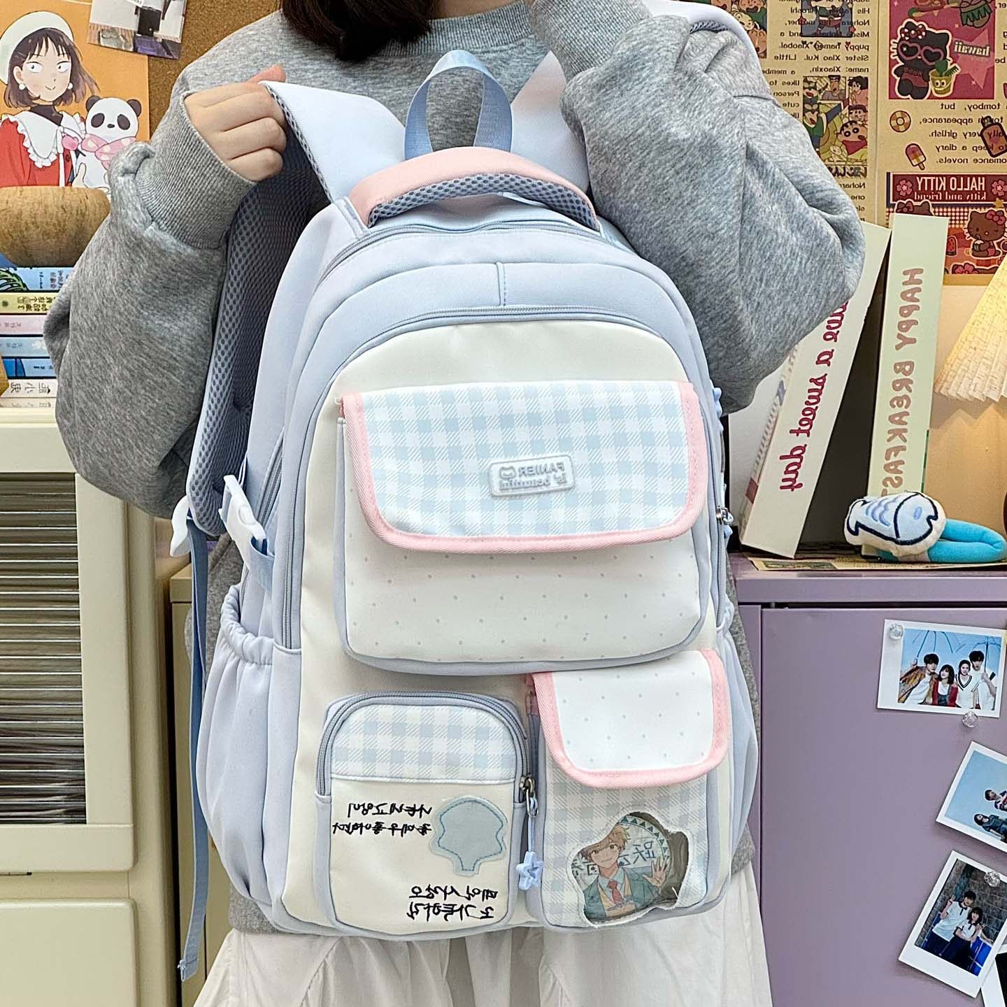 格子书包初中生女生小学生4-6年级校园可爱小清新背包女孩双肩包
