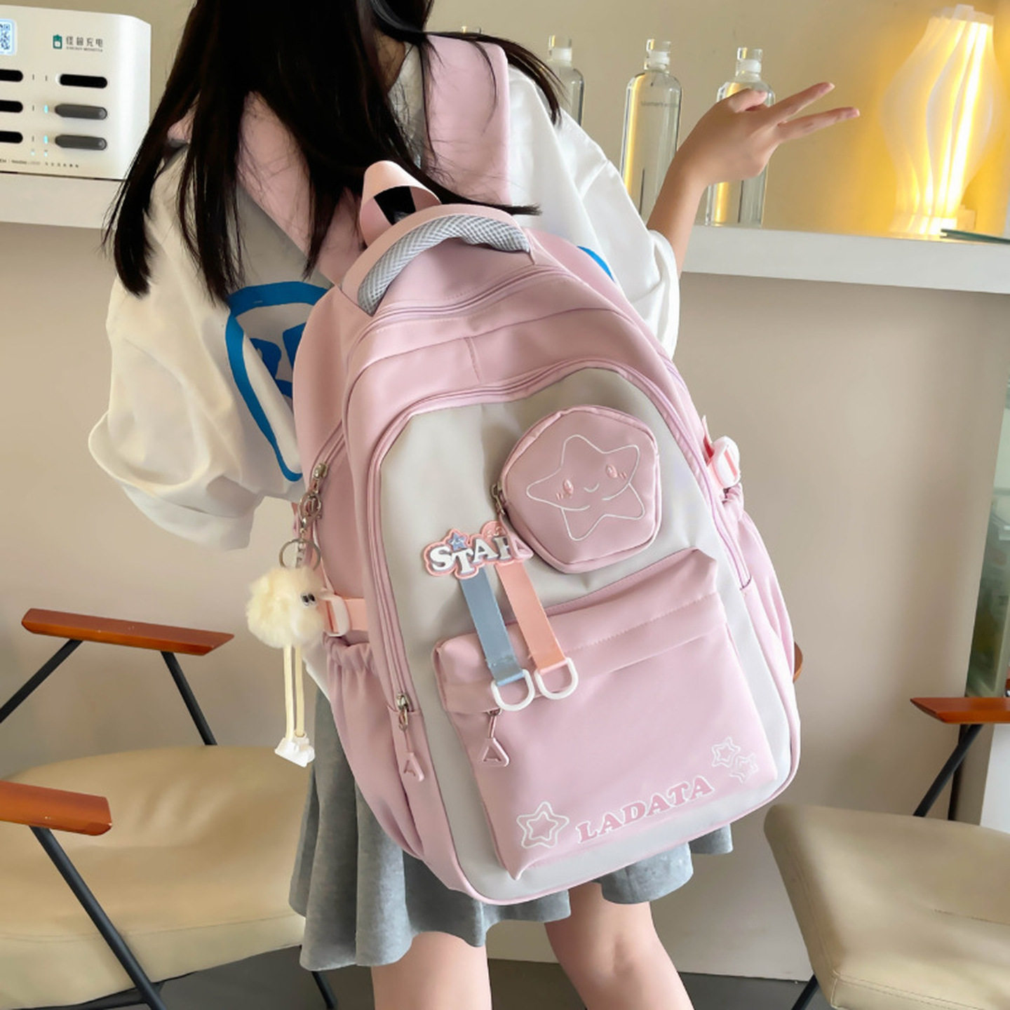 书包初中生女生高中小学生背包高颜值ins风星星图案大容量双肩包
