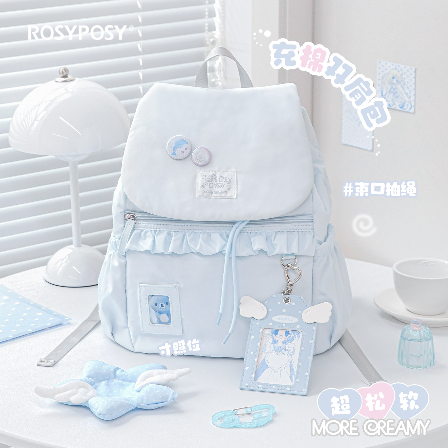 RosyPosy柔设充棉书包ins小众双肩包女生小学生初中背包高级感小