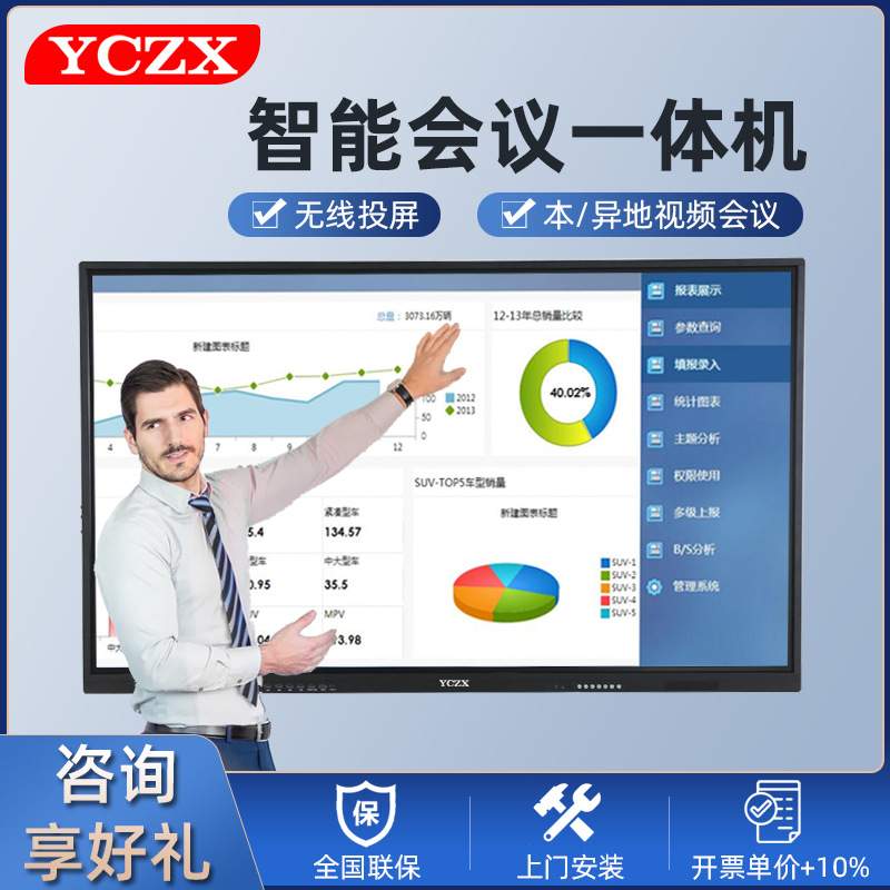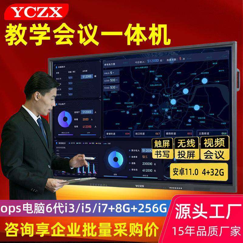 外贸75/85/110英寸6代高配大屏多媒体会议平板触摸教学会议一体机