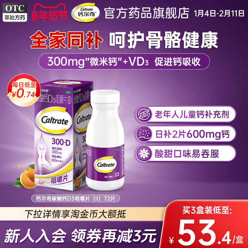钙尔奇碳酸钙d3微米钙咀嚼片孕妇成人中老年儿童维生素D钙片正品
