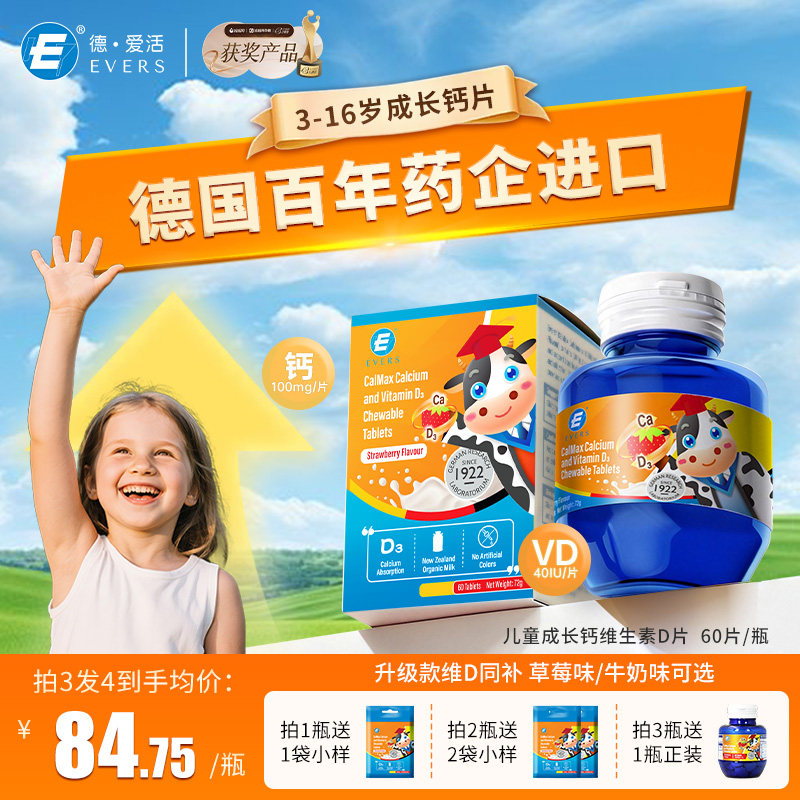 【妈妈网口碑榜】德国Evers牛博士儿童钙VD3岁以上咀嚼钙片6到12