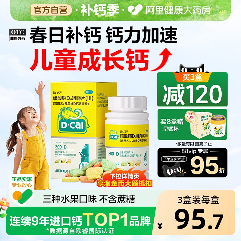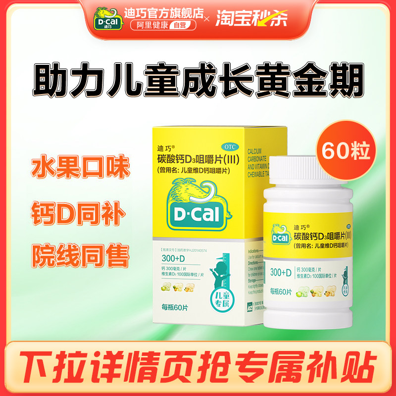 迪巧儿童钙片碳酸钙维d3咀嚼片青少年补钙3岁以上6到12岁官方旗舰