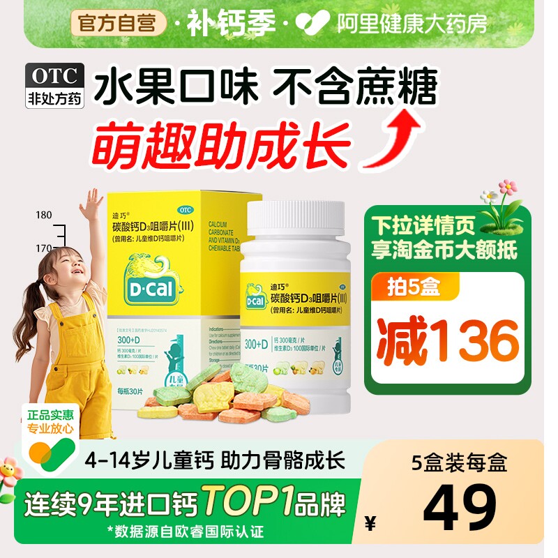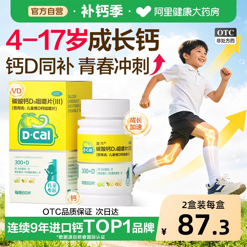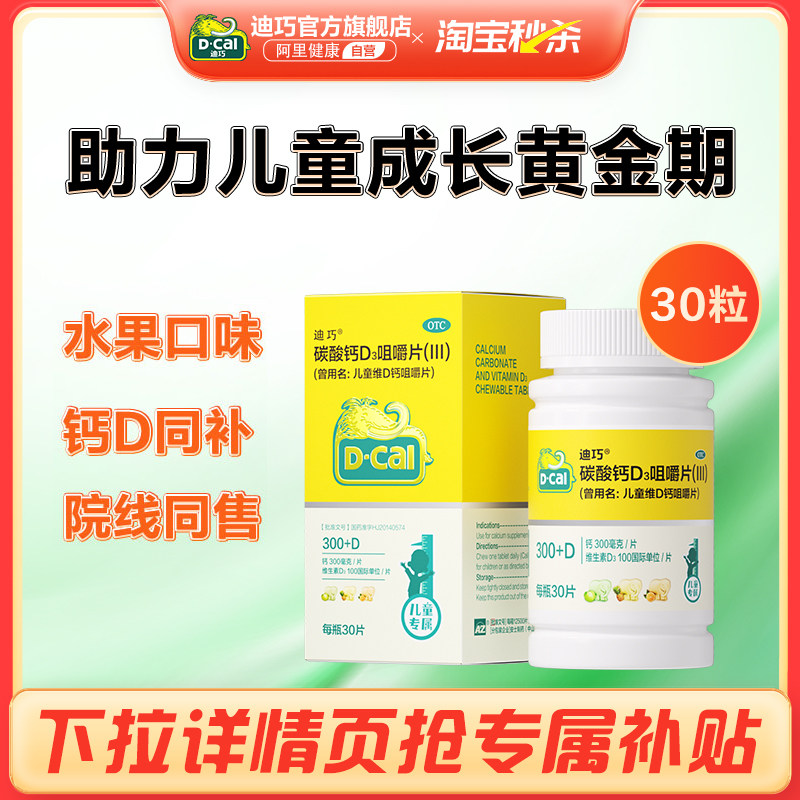 迪巧碳酸钙D3咀嚼片6到12岁儿童官方宝宝小儿维生素维补钙钙片OTC
