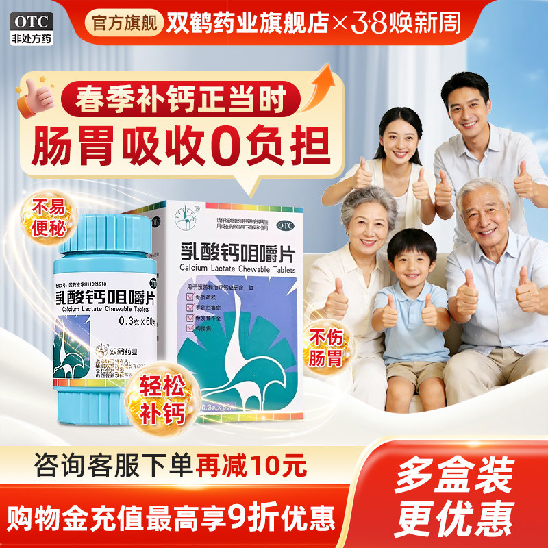 双鹤乳酸钙片咀嚼片儿童青少成人中老年有机补钙片otc官方旗舰店