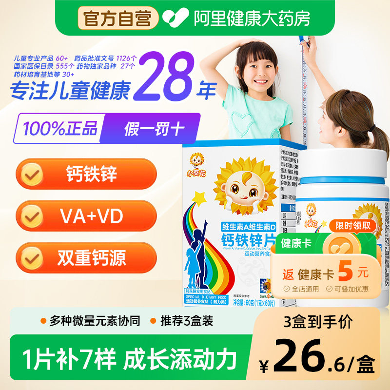 小葵花复合维生素AD钙铁锌咀嚼片儿童钙片vd3碳酸钙旗舰店官方