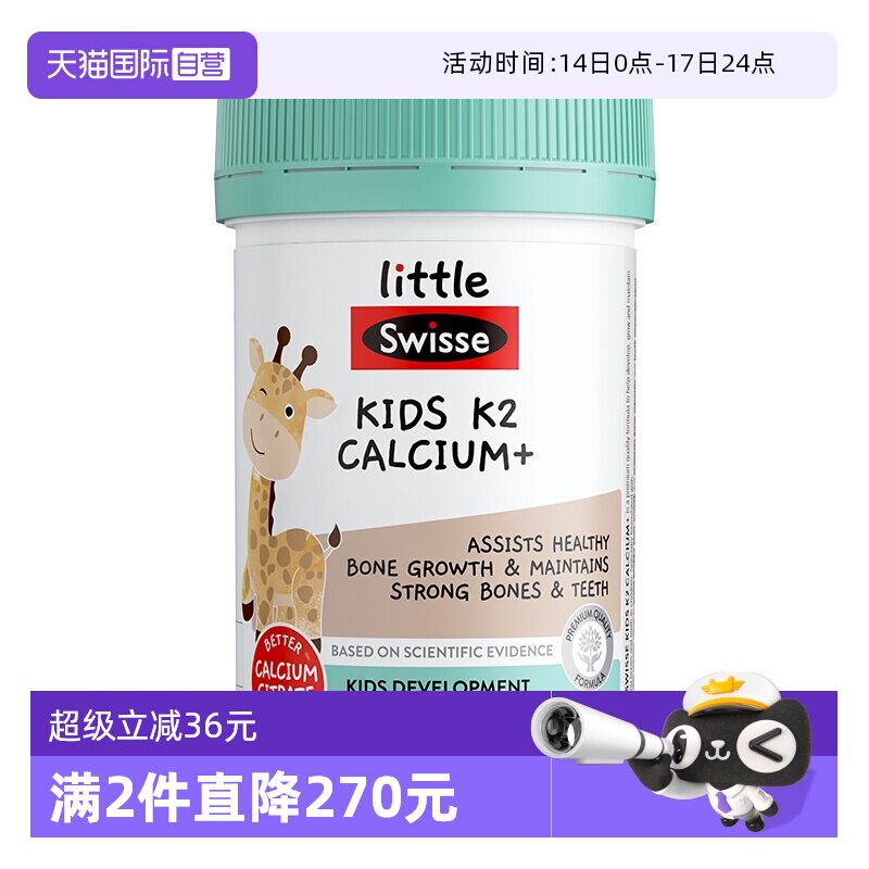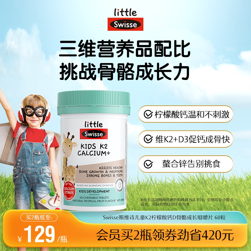 Swisse斯维诗儿童液体钙镁锌k2柠檬酸钙片成长钙6到12岁咀嚼片