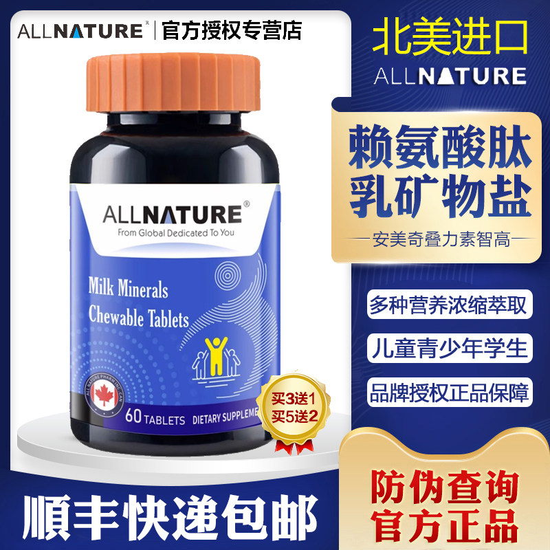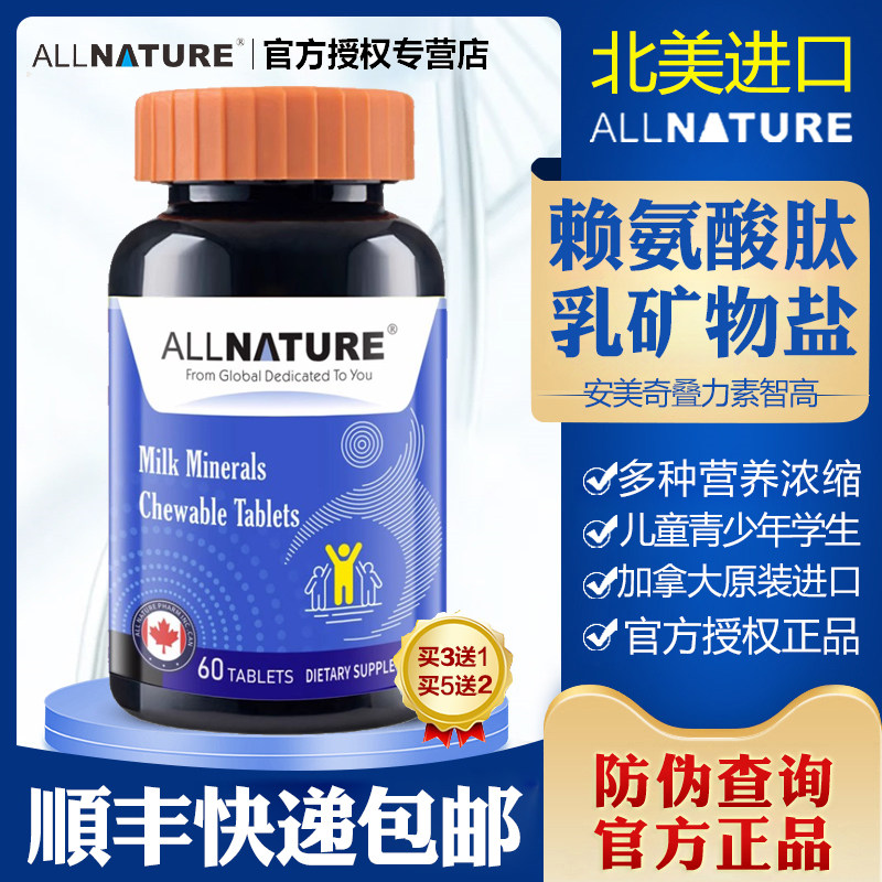 安美奇叠力素智高赖氨酸乳矿物盐牛初乳青少年学生儿童钙片咀嚼片