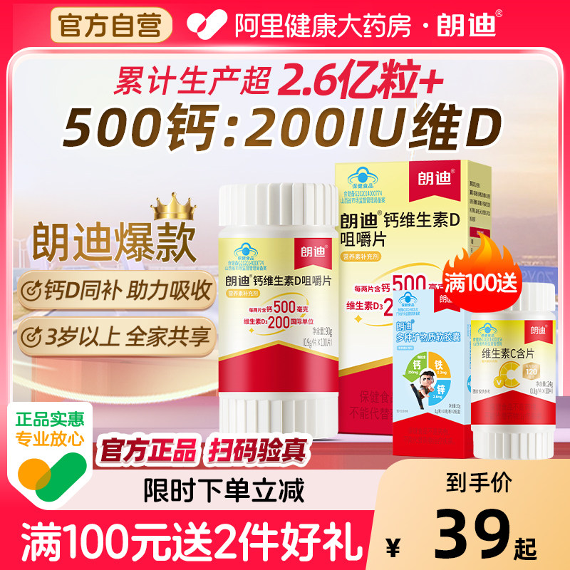 朗迪碳酸钙d3咀嚼片成人中老年儿童钙片维生素d孕妇补钙官方正品