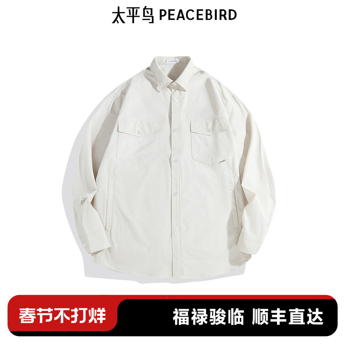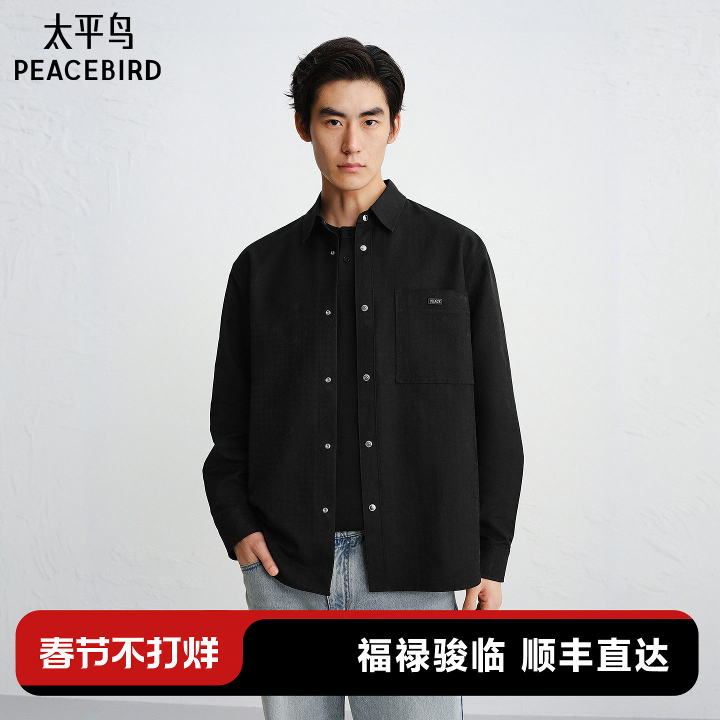 太平鸟男装 休闲衬衫26春季新款时尚潮流外穿式衬衫男士纯色衬衫