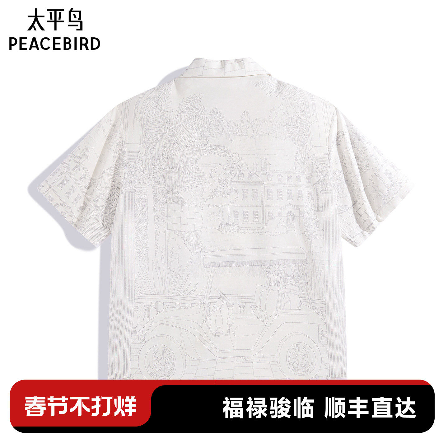 太平鸟男装 休闲衬衫秋季外穿式衬衫宽松老花衬衫经典休闲衬衣男