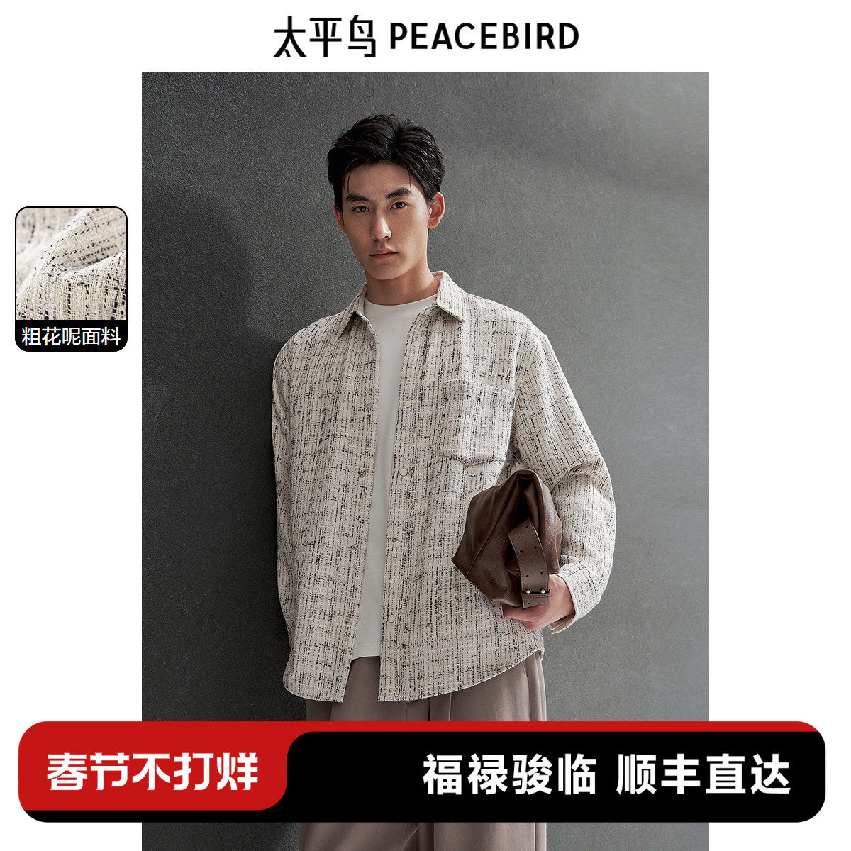 太平鸟男装 休闲衬衫春秋季衬衣小香风衬衫粗花呢肌理衬衫上衣男