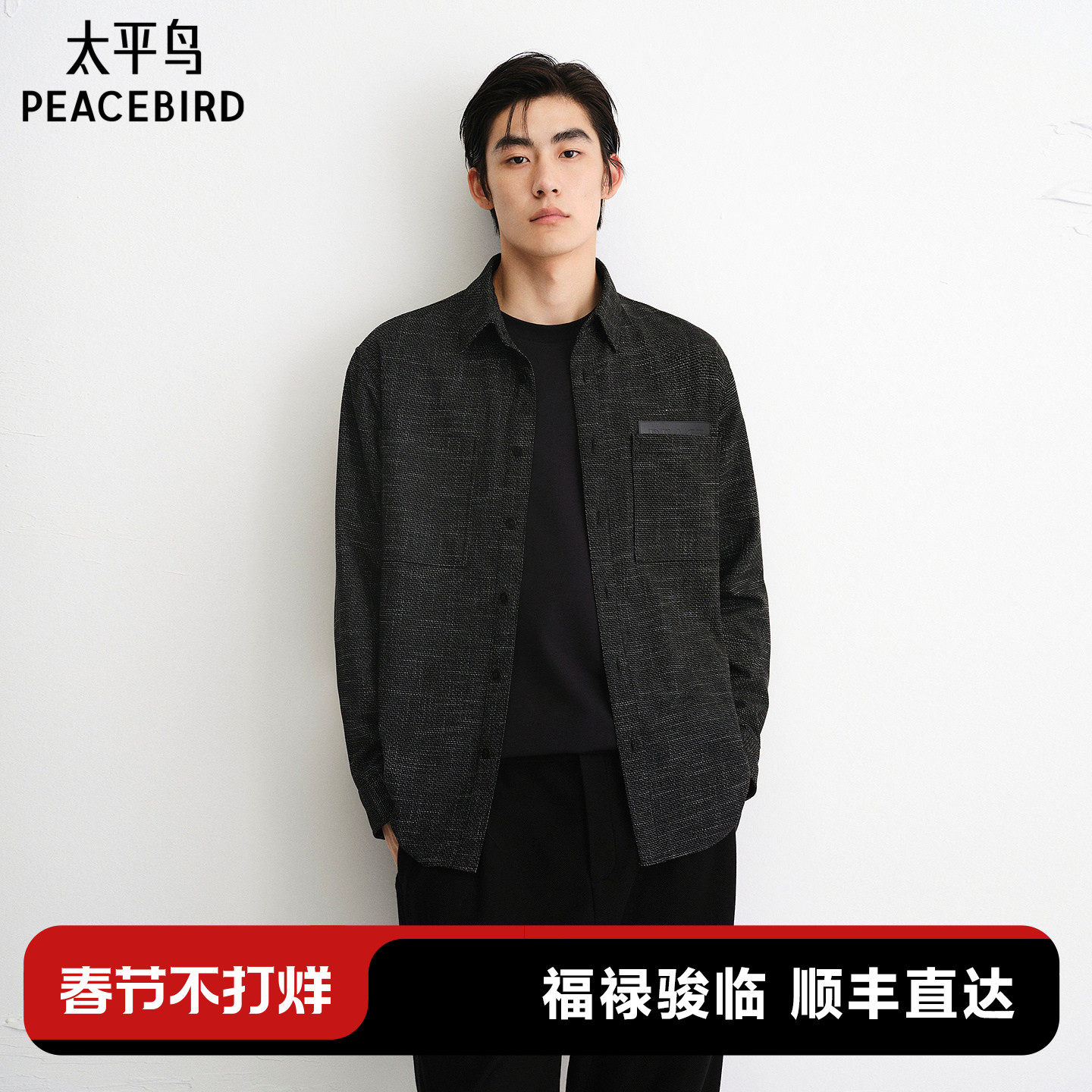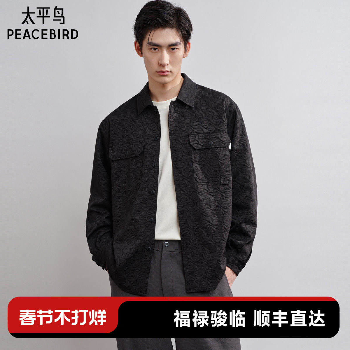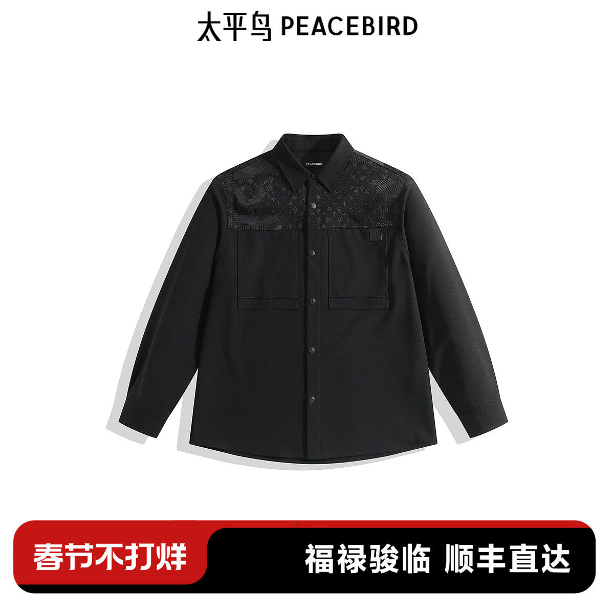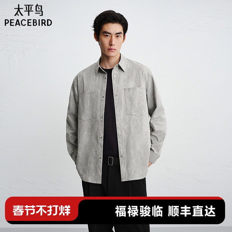 太平鸟男装 休闲衬衫2026春季新款肌理提花时尚衬衫外穿式衬衣潮