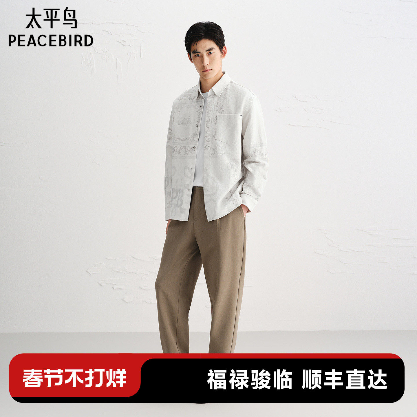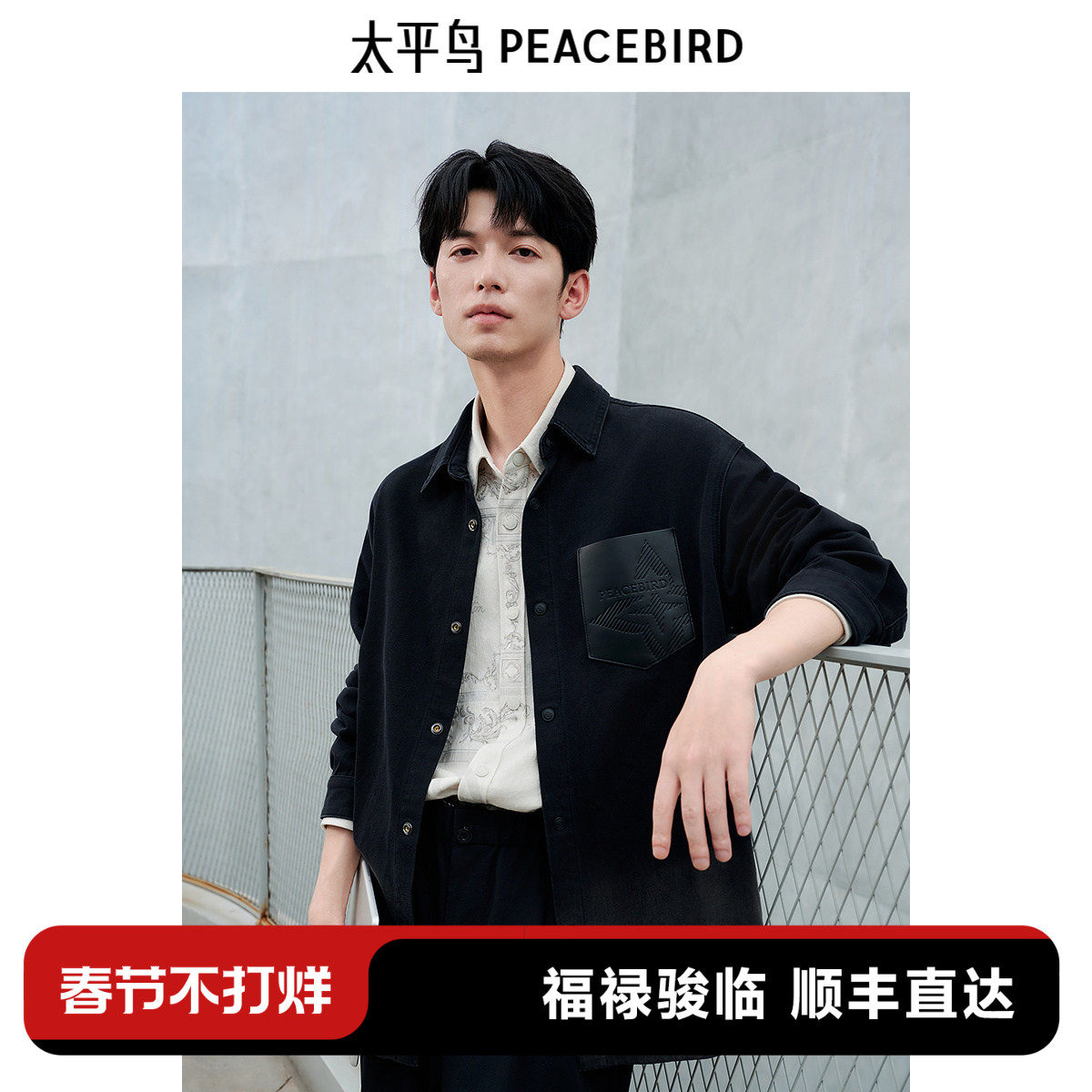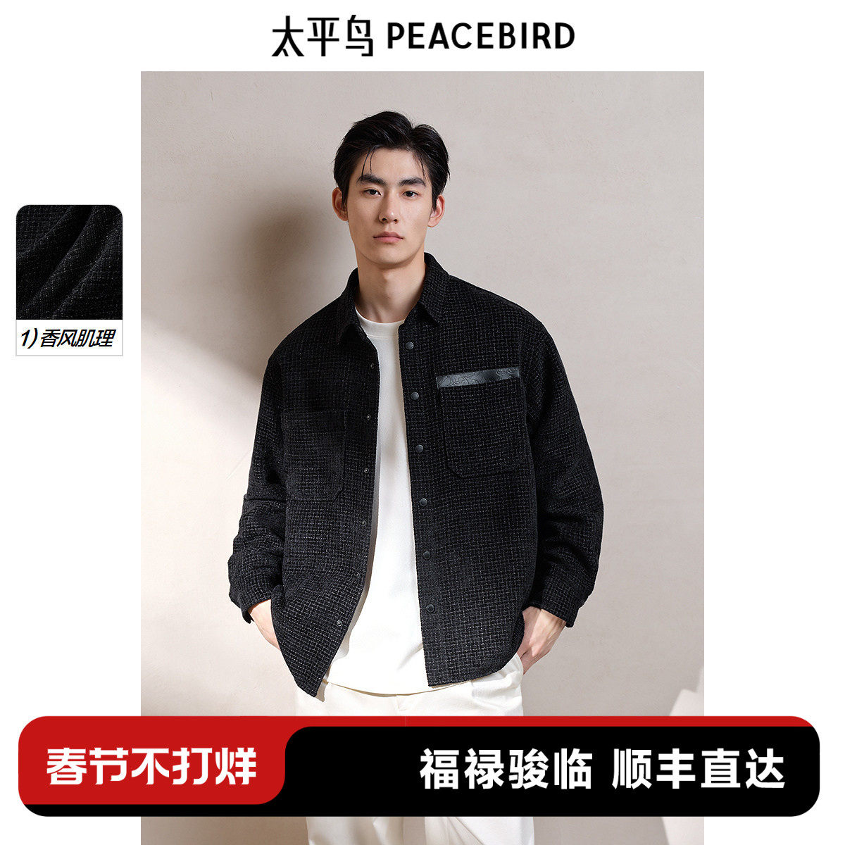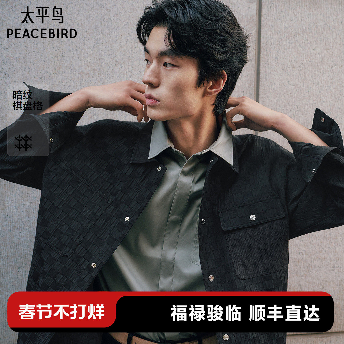 太平鸟男装 休闲衬衫2026春季新款肌理提花时尚衬衫外穿式衬衣潮