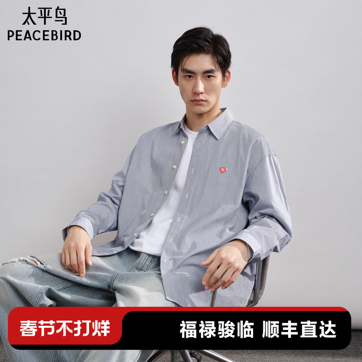 太平鸟男装 休闲衬衫2026春季新款色织花纱宽松男士时尚衬衫潮