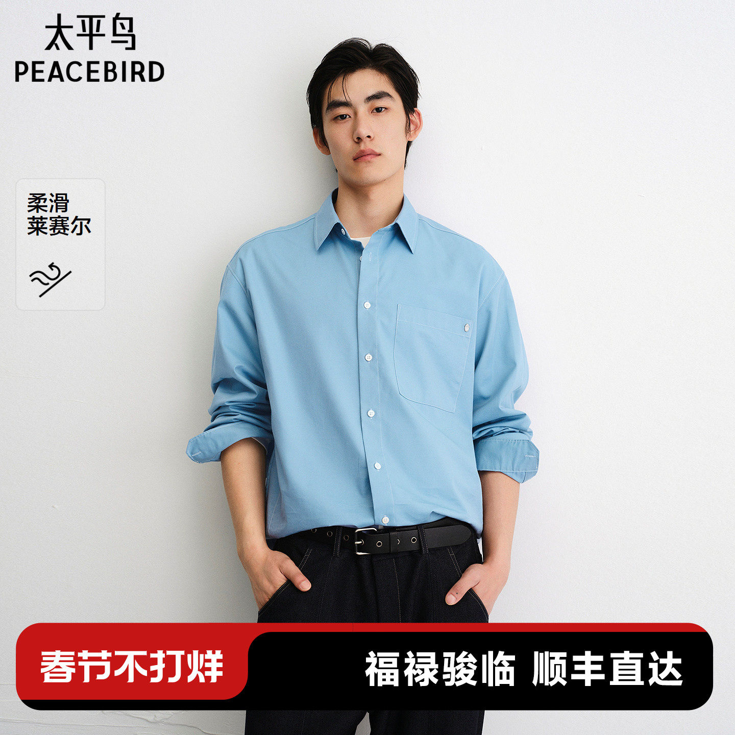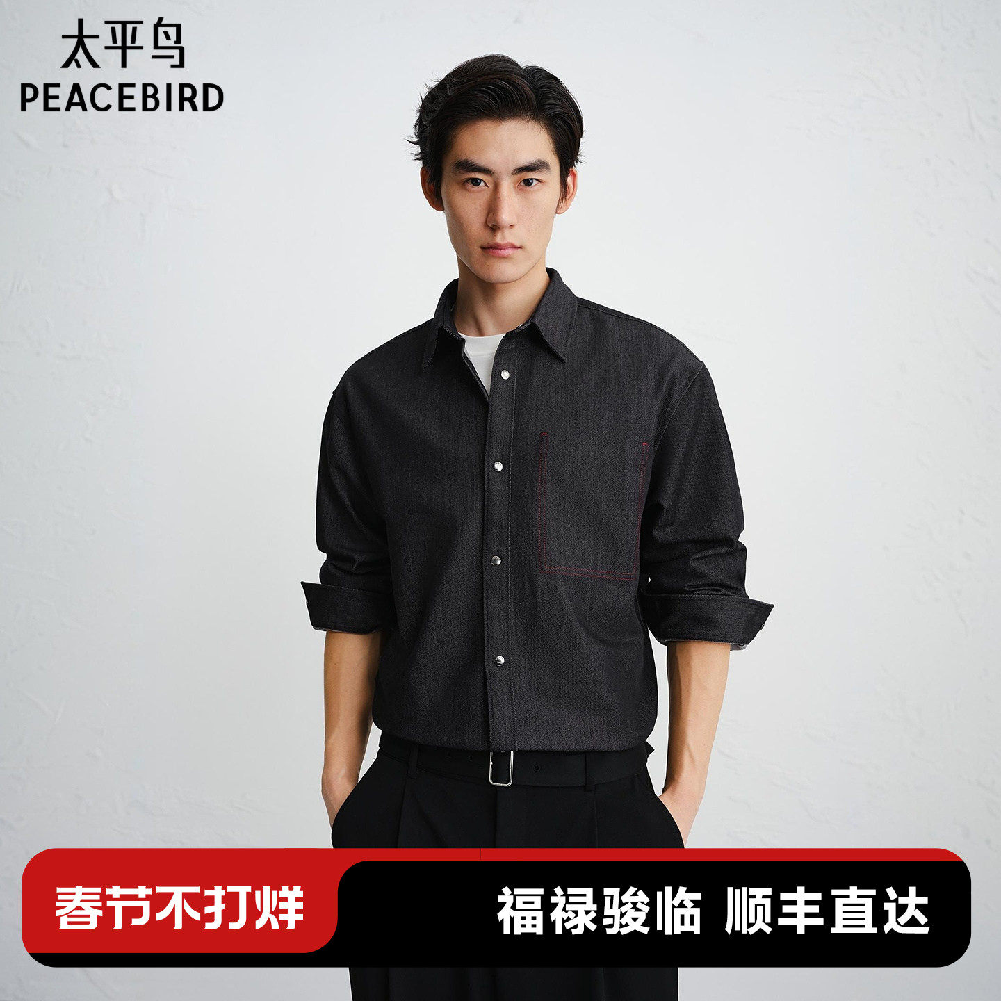 太平鸟男装 休闲衬衫2025秋季新款丝光牛仔衬衫阔版时尚男士衬衫