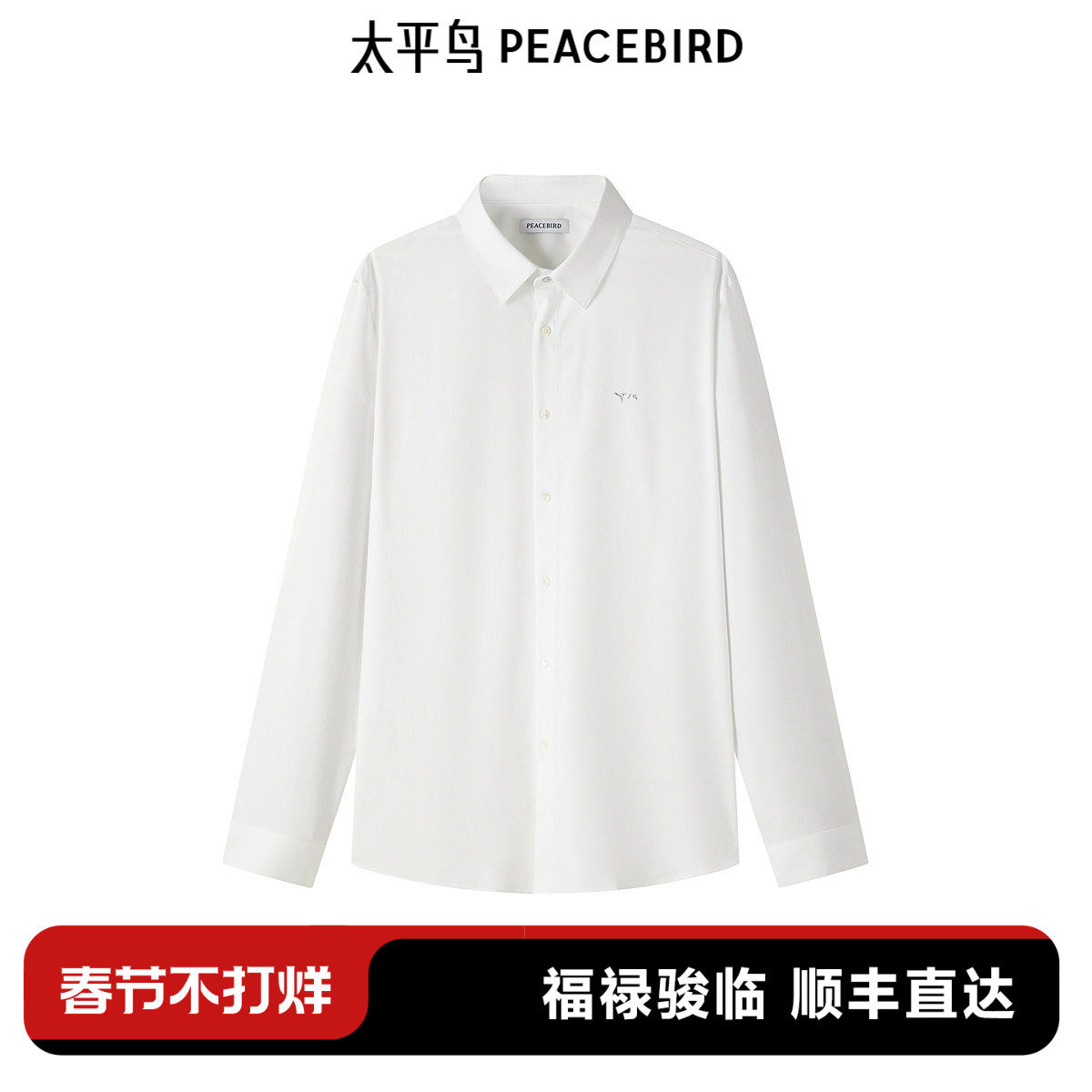 太平鸟男装 休闲衬衫斯文衬衫修身西装衬衫纯色商务通勤西服衬衣
