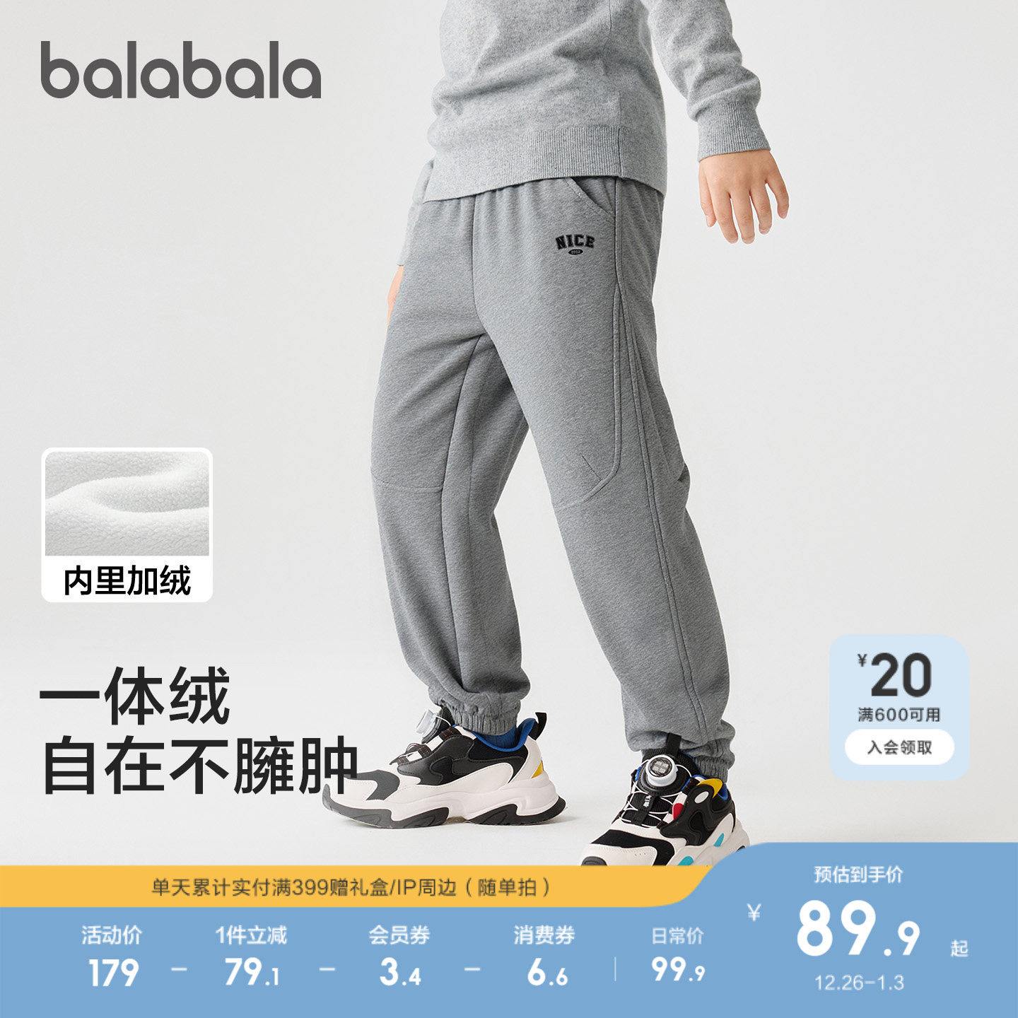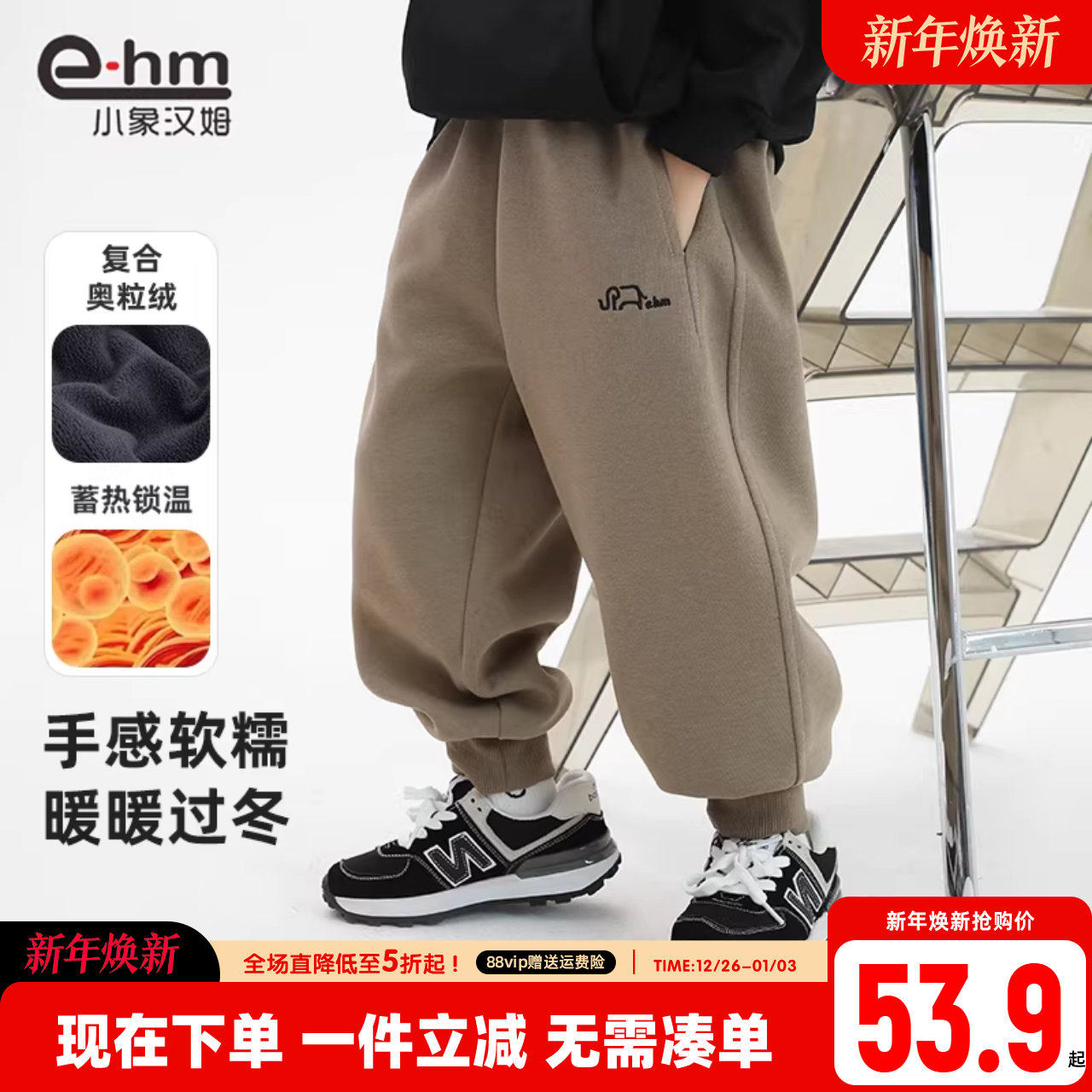 - 男童加绒运动裤