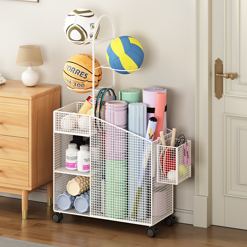 瑜伽垫收纳架落地家用运动篮球工具筐移动健身器材体育用品置物架